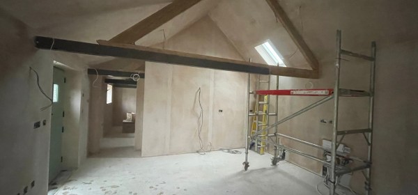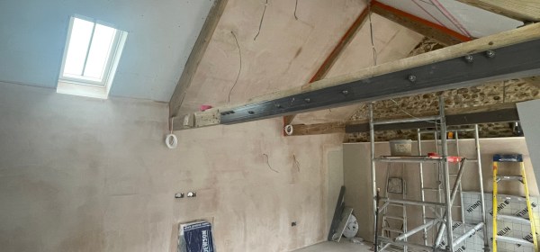 The Cow Shed is coming along quickly – our builders have now finished most of the plastering and in a few days it’ll be ready to start painting. There’s one