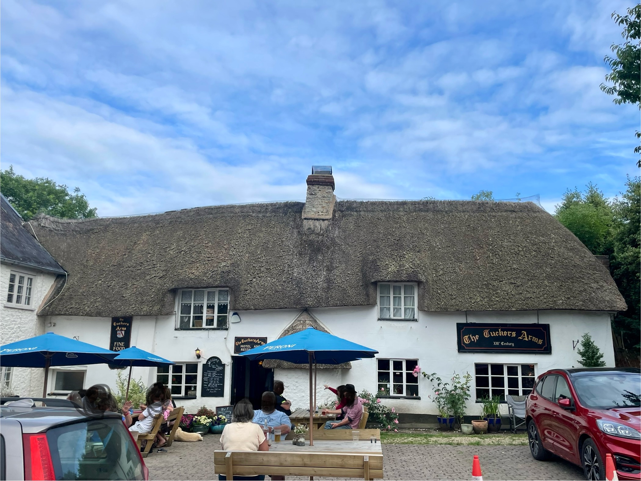 The Tuckers Arms is a 12th century thatched pub with a good sized front and back garden. It serves quality food and is dog friendly, and has managed to retain its old charm inside. They also have an amazing collection of miniatures!