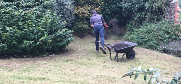 Autumn, I’m told, is the best time of year to repair grass; and seeing as though John’s first efforts in Spring only included the front and back lawns, it was inevitable