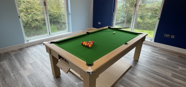 We’ve managed to find time to make more progress in the games room in the New Barn this week. The pool table we ordered arrived