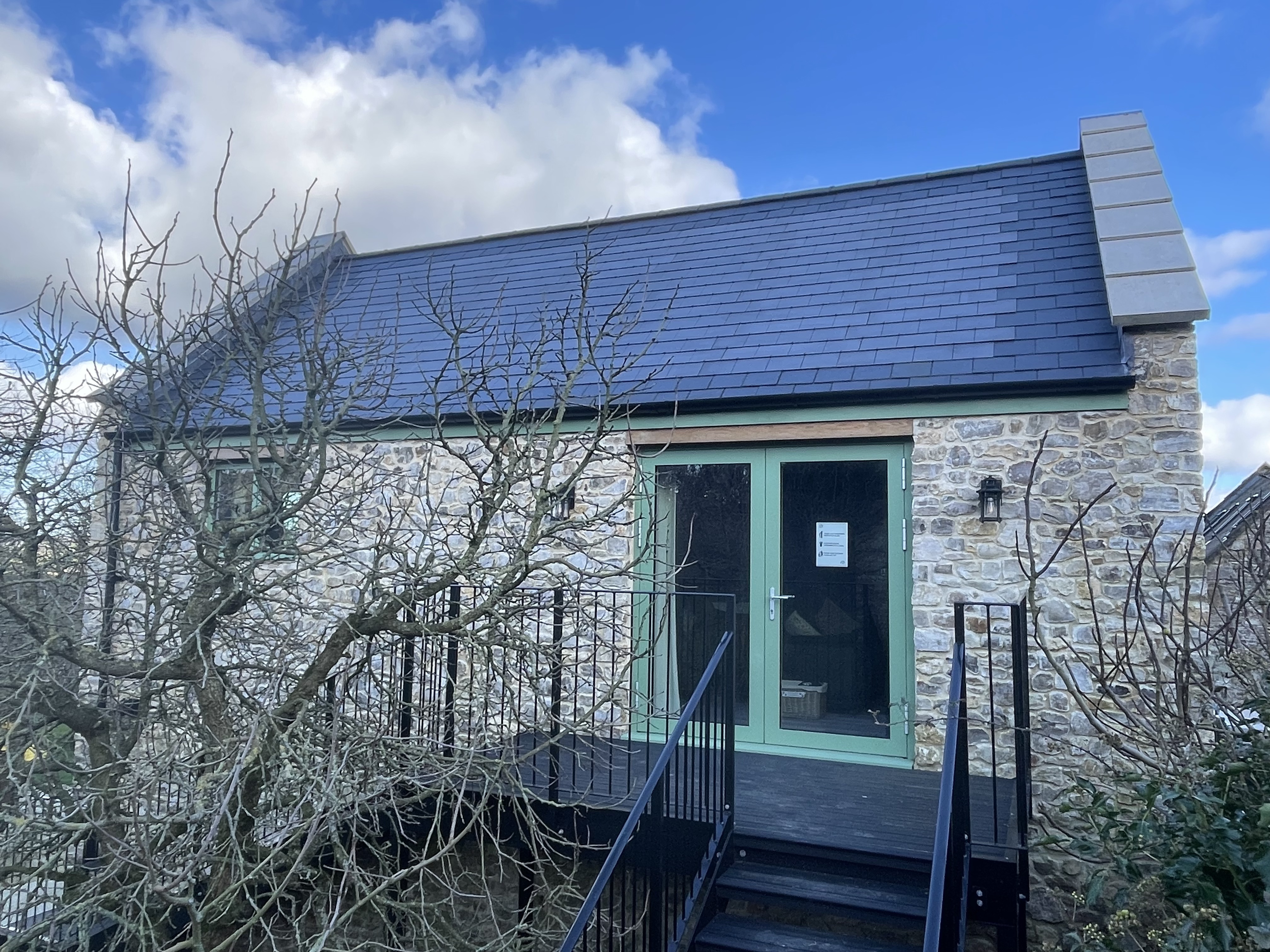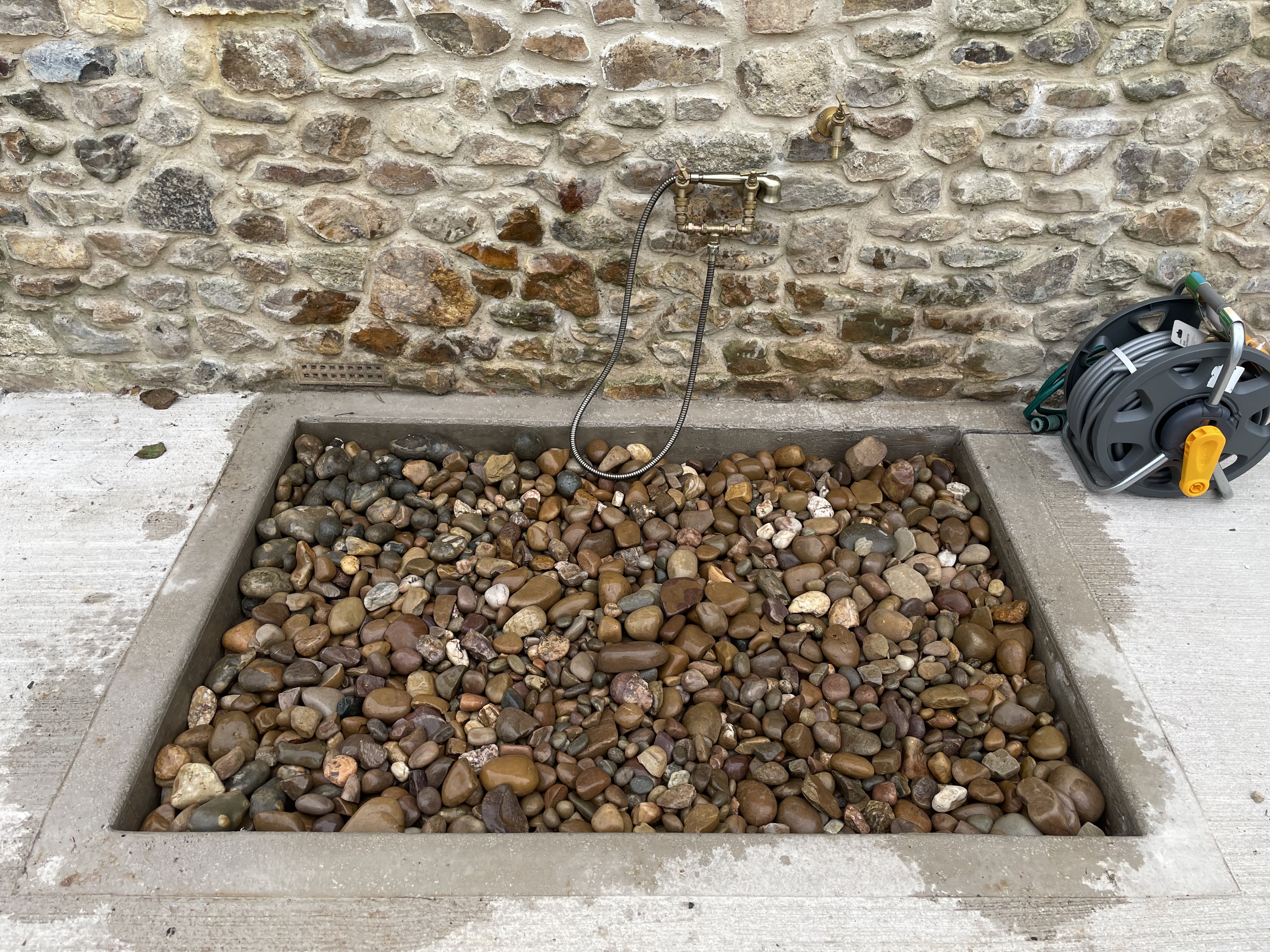 On the side of the New Barn we have installed an outdoors shower to help guests clean muddy dogs and boots before going inside. It has a small supply of hot water to keep pups happy in the colder weather!